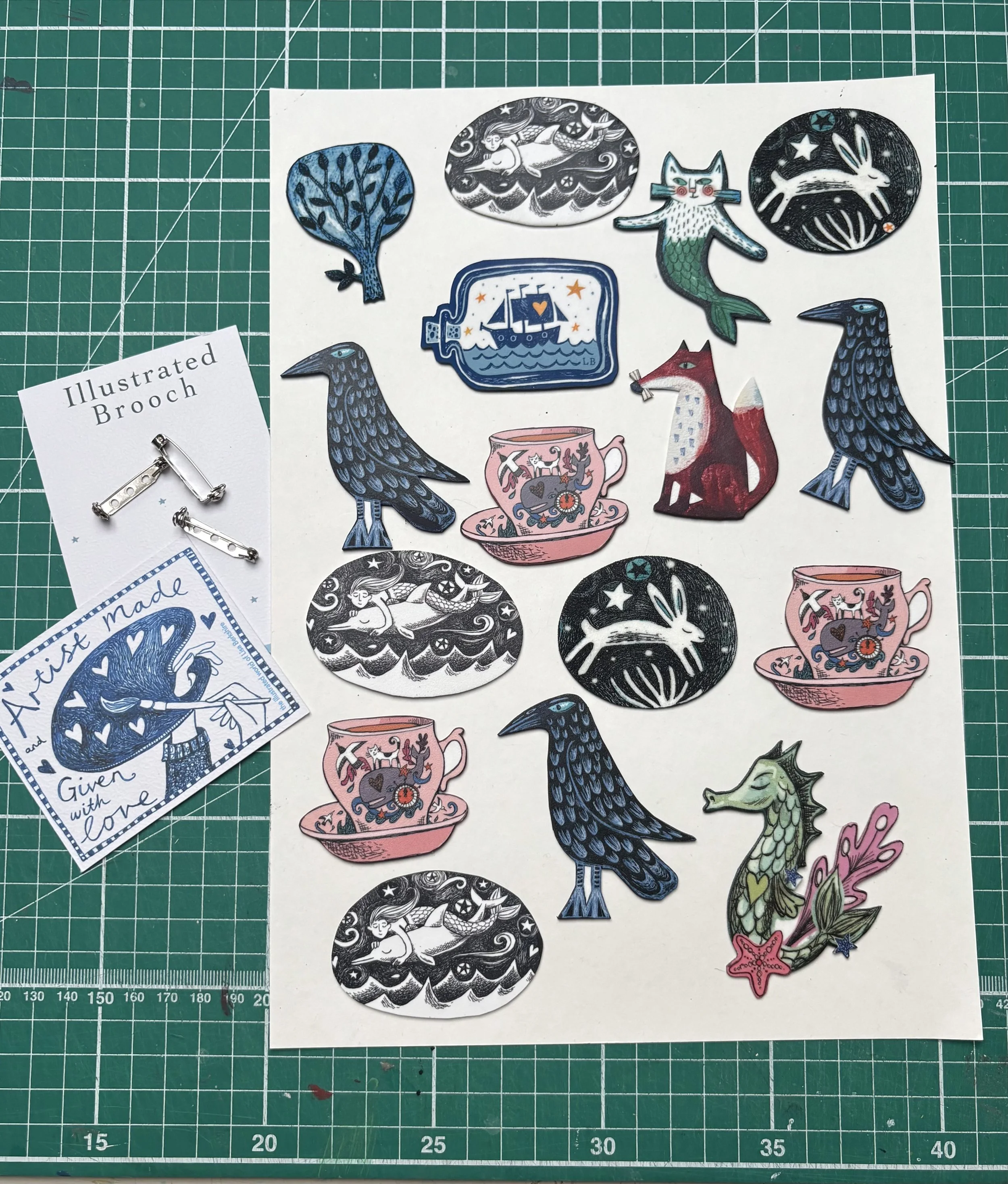 These versions of the brooches come with an illustrated coordinating pin, to accessorise the brooch and add a little bit of story!