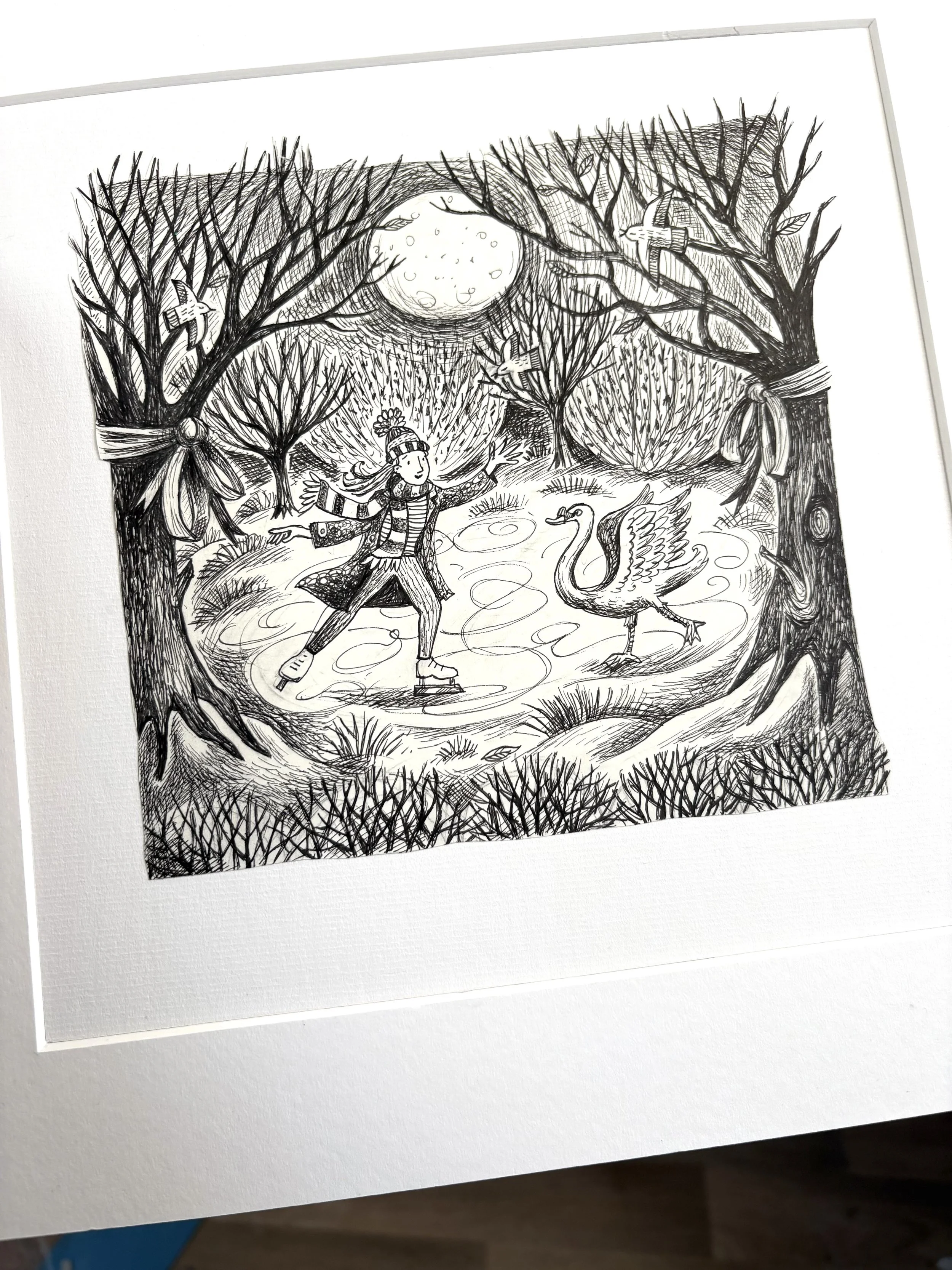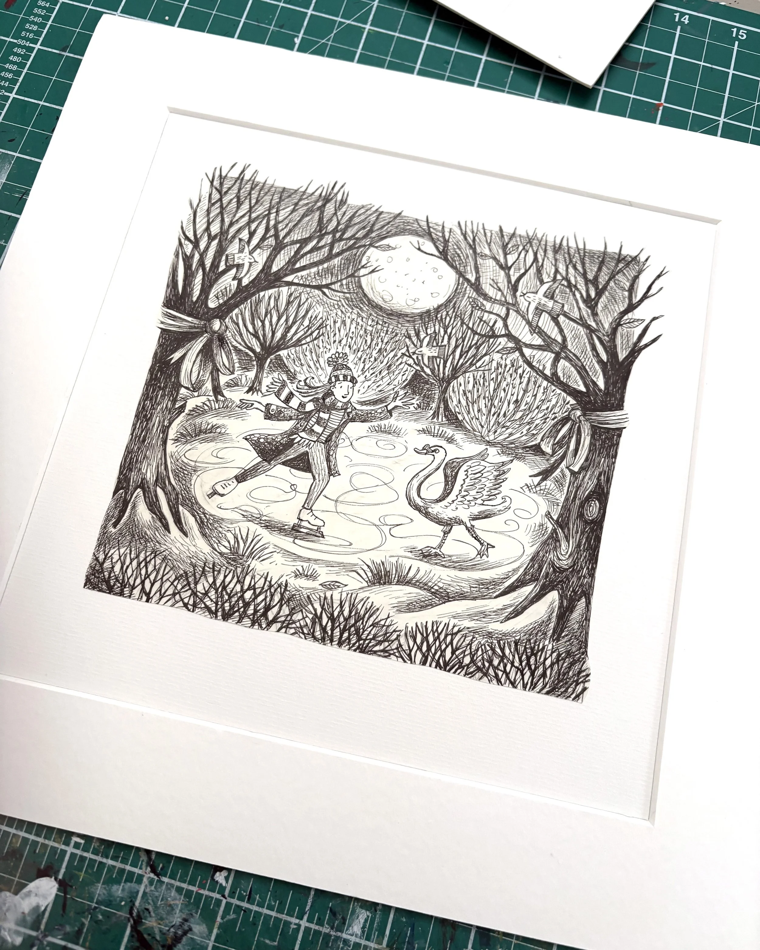 I created this original drawing in my Moleskine large sketchbook on a drawing session in a cafe. It just happened and I just needed to colour it up later. I love the original though, and it is now available here as the original line artwork.